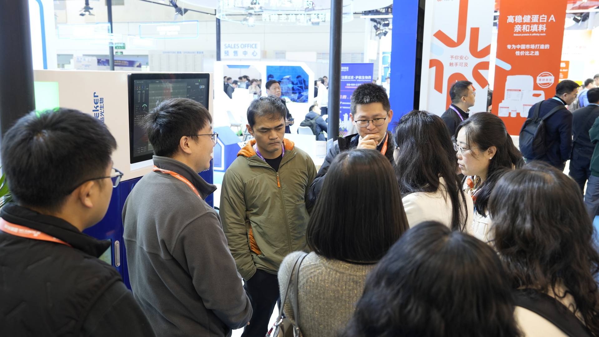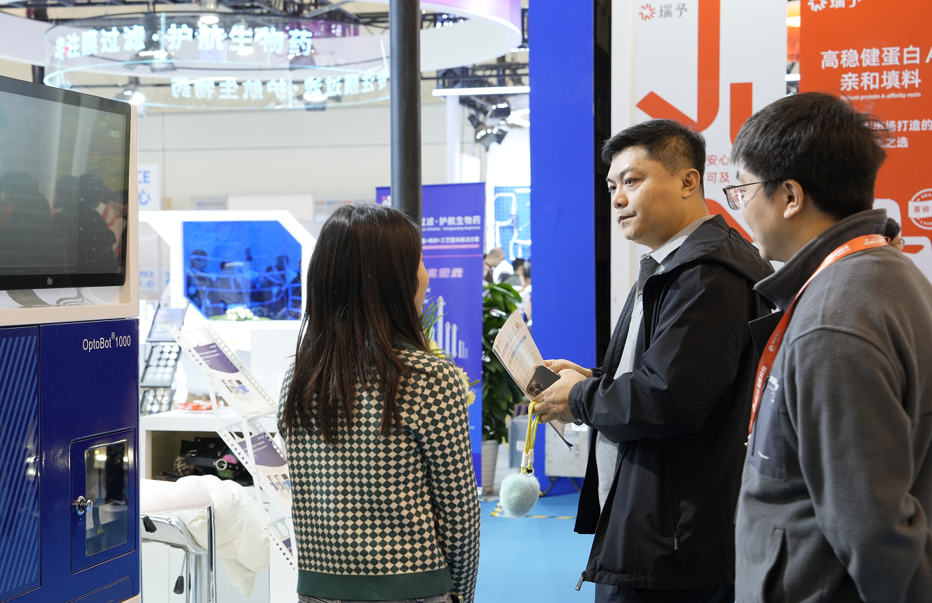 追光生物展台前观众络绎不绝,围绕高通量单细胞分选、微纳操控等前沿技术展开深度交流。
