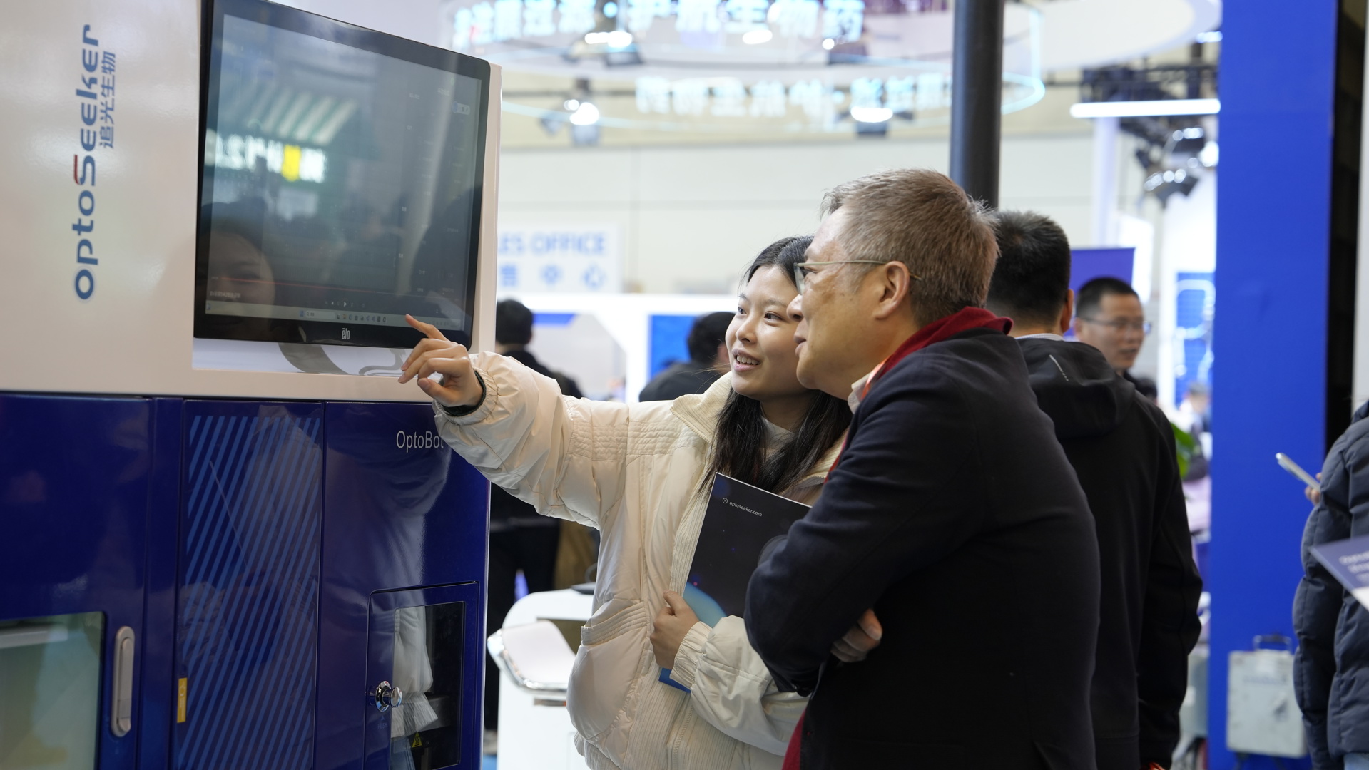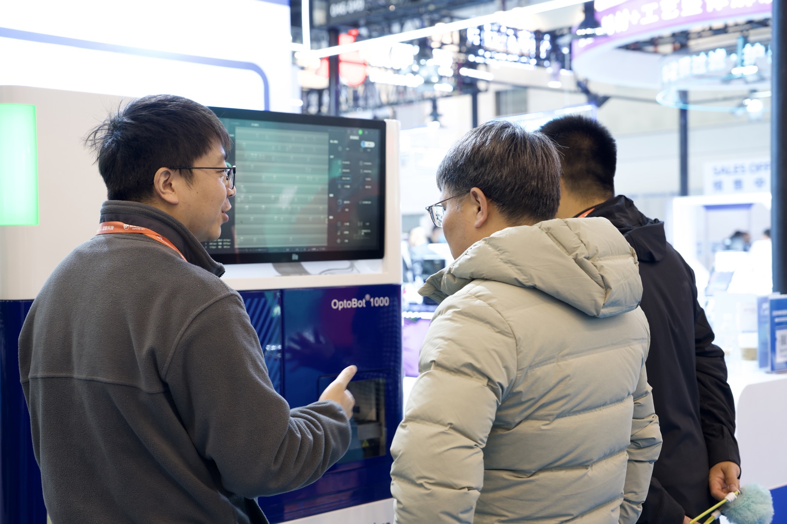 追光生物技术团队以专业态度为每位观众详细介绍OptoBot®系列产品如何通过AI智能分析软件实现全流程自动化,以及DropletBot®数字微流控平台在化学反应自动化、生物样本处理中的创新应用。现场演示的光流控技术操作演示更是吸引了众多观众驻足观摩。