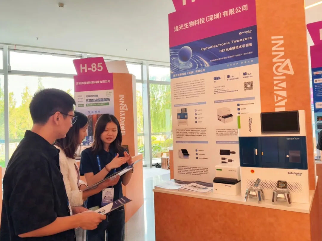 此次获奖,是追光生物深耕技术研发、践行 “科技成果普惠共享” 理念的必然印证。在 “技术转移大会” 论坛的产品首发专场及展览区,追光生物通过 OptoBot®1000系列高通量单细胞光流控分选仪(预热首秀)、OptoBot®500光电微流控系统、OptoNeuroBot®结构光投影仪等核心产品,全方位展现了自主研发的光流控、AI 算法、光电镊等关键技术实力。其中,OptoBot®1000系列打造的 “筛选 - 测序 - 数据分析” 全流程自主可控平台,精准直击生物医药企业研发痛点,可大幅缩短抗体筛选周期、降低基因治疗研发成本,其突出的技术创新性与显著的产业应用价值,成为此次斩获锐星奖的核心支撑。
