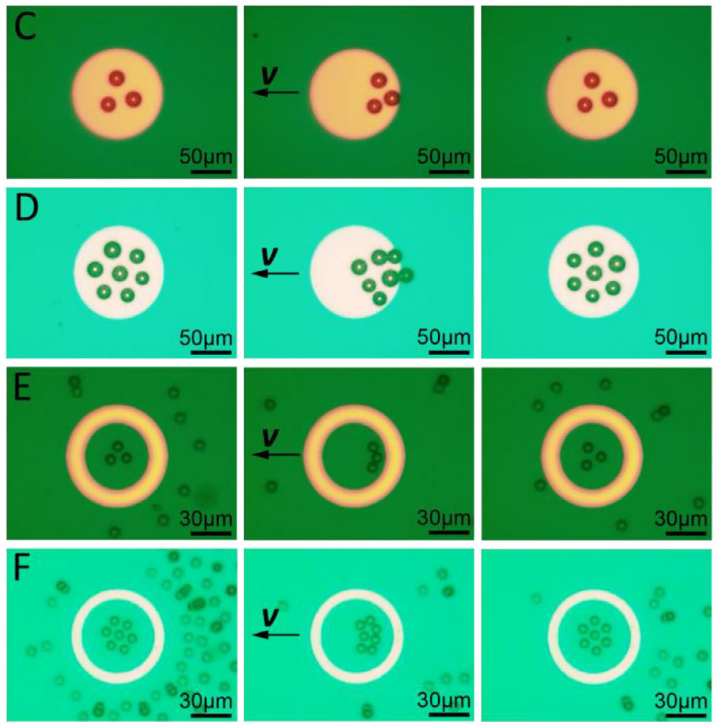 金属微球和PS微球组装结构受光图案移动扰动后,停止移动即可在数十秒内恢复原始构型,实验过程见原文图4C-F。