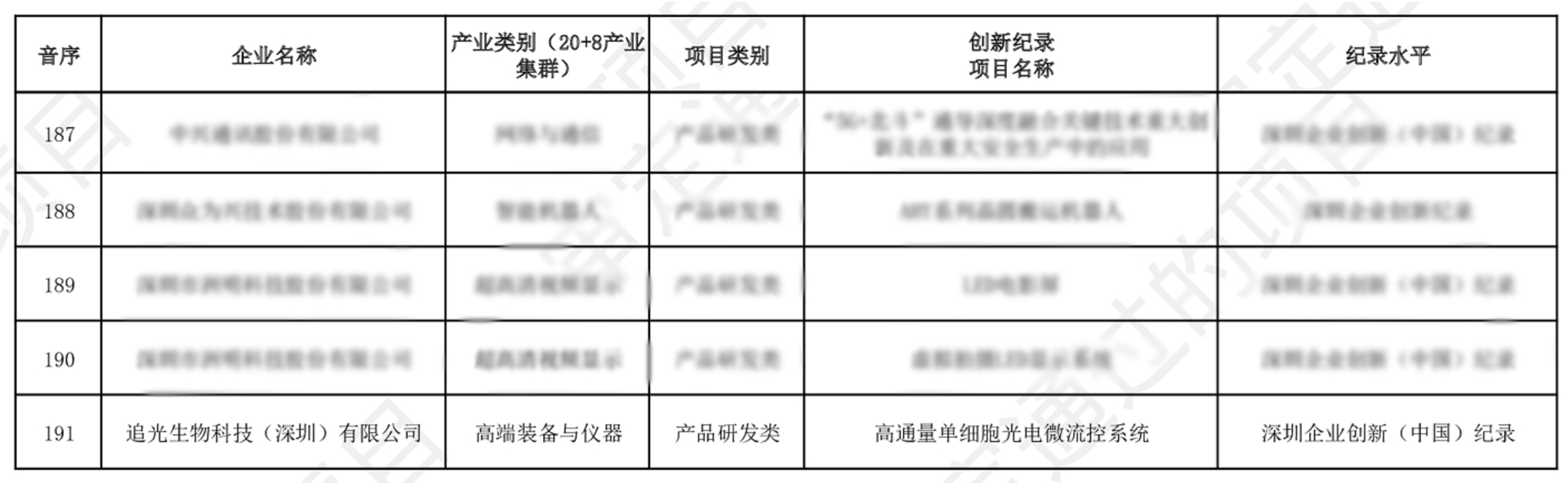深圳企业创新纪录名单
